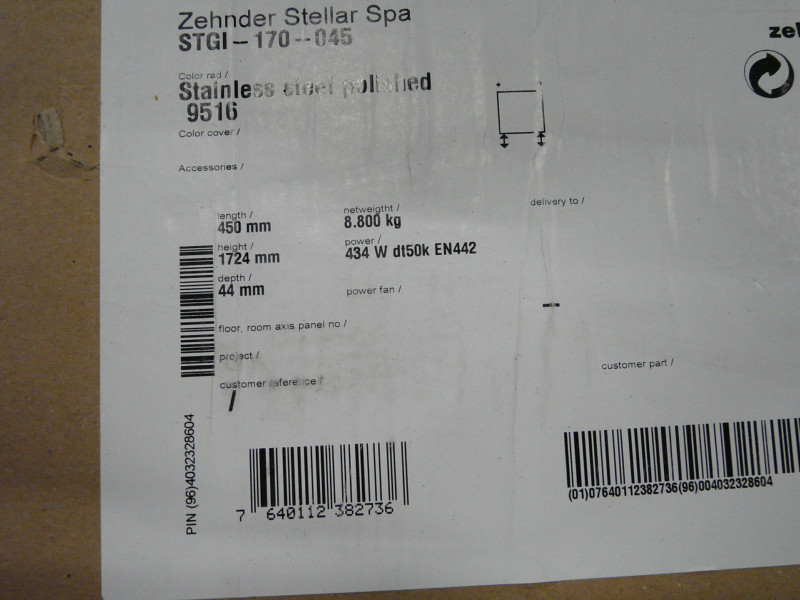 KBP-12496 Zehnder Stellar Spa design radiator 1724 x 450 x 44