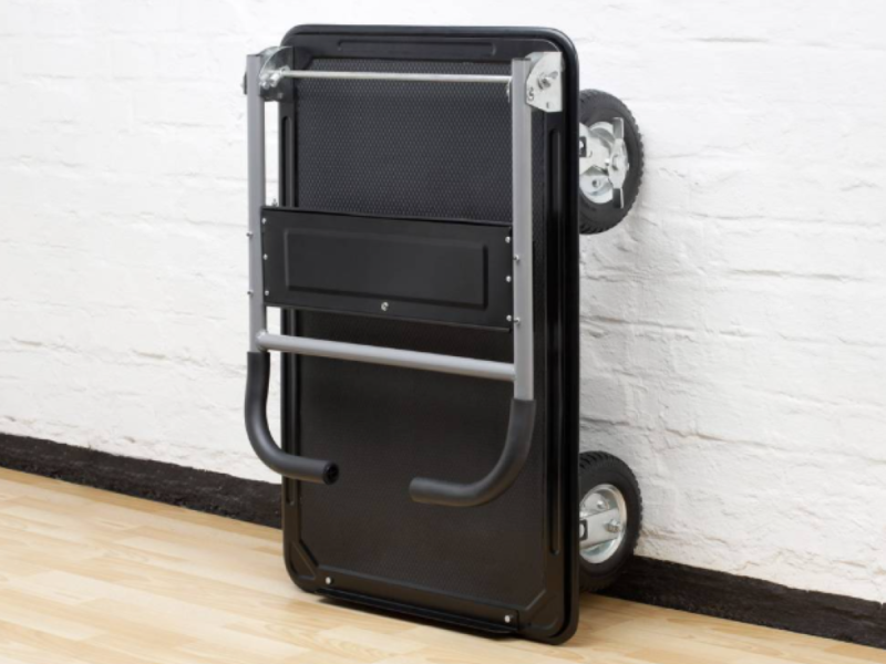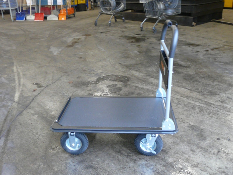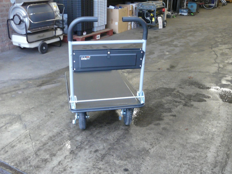 | Opmerkingen | Extra opberg vak bij de handgrepen voor kleine spullen. Laadvlak met antislip laag. Voorzien van rubberen wielen. Kan ingeklapt worden |